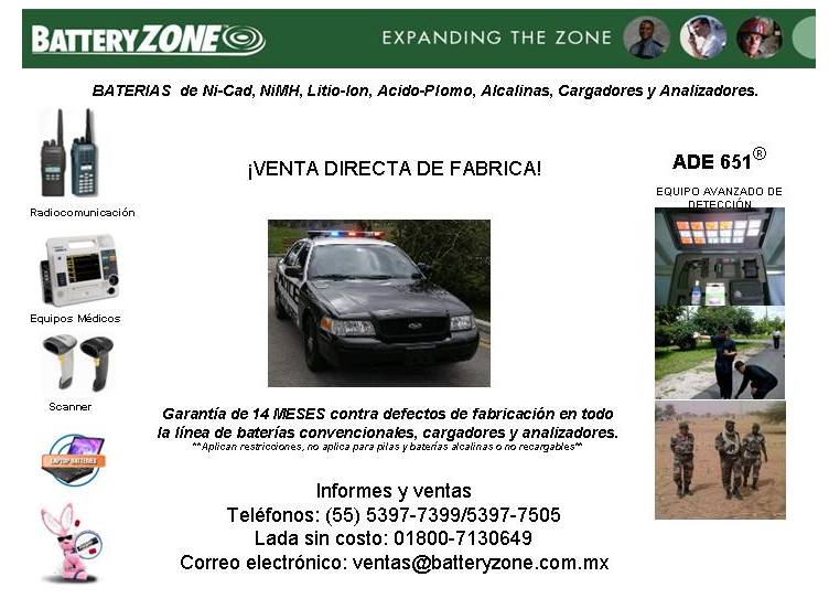 ADE651 The ATSC of UK also sold in Mexico. For a long time and even though looking on the internet could not get the data from its distributors in the country. When asked the Department of Defense, it denied any knowledge of this product. It was not until the Government of Colima, one of its press releases to defend themselves against accusations of having bought refuse , published the name of Battery Network Inc. as your provider, I knew who they were. Battery